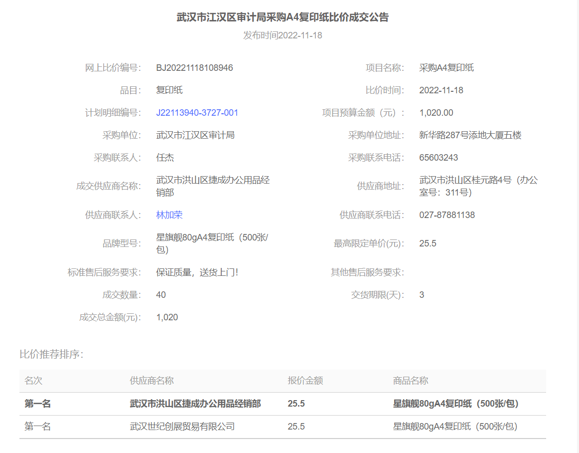 | 标 题 | 欧亚国际(中国)官方网站 审计局采购A4复印纸比价成交公告 | ||