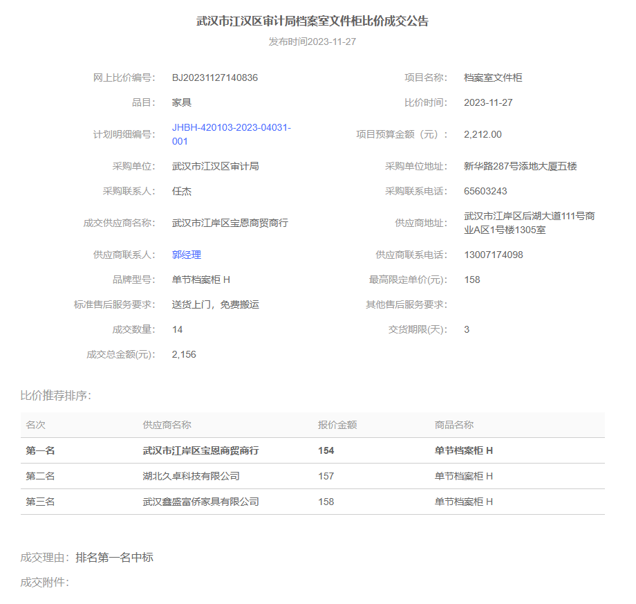 | 标 题 | 欧亚国际(中国)官方网站 审计局档案室文件柜比价成交公告 | ||