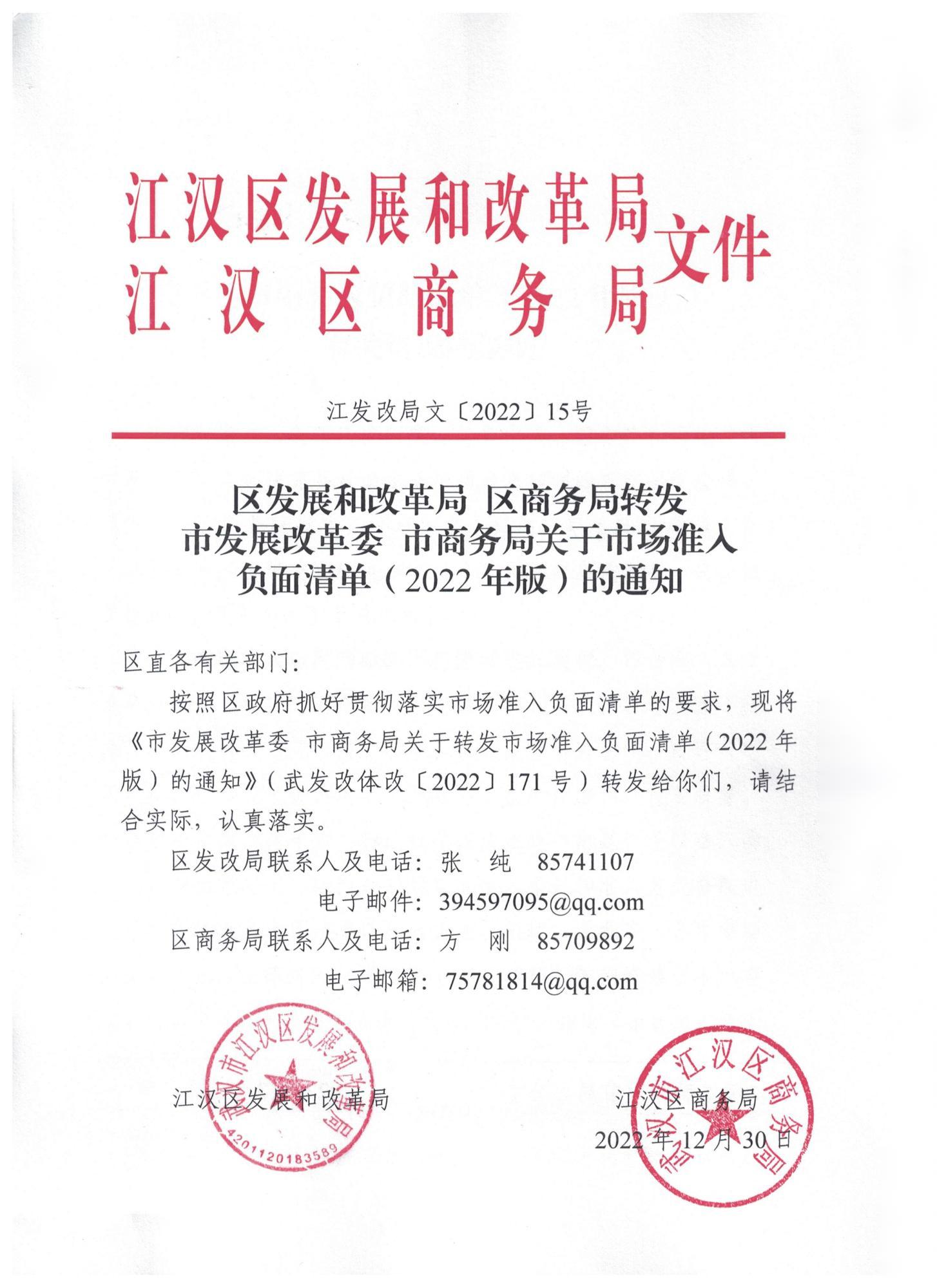 | 标 题 | 区发展和改革局 区商务局转发市发展改革委 市商务局关于市场准入负面清单(2022年版)的通知 | ||