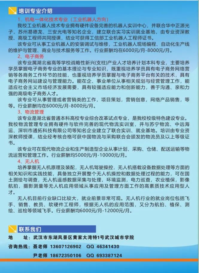 为做好退役军人职业技能培训工作,武汉市退役军人事务局今年考核并确定了全市45家职业教育和技能培训机构,面向退役军人开展免费职业教育和技能培训,退役军人可根据自身需求从中选择承训机构和所学专业接受培训。