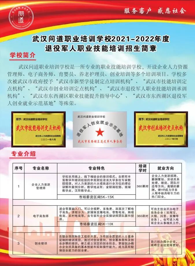 2021年退役季,这些机构为退役军人提供免费培训(二)