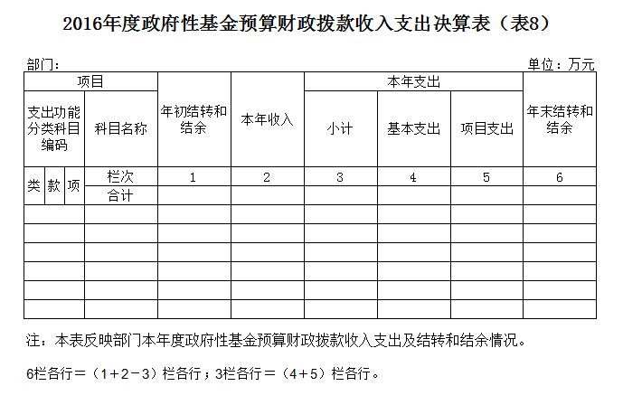 八、政府性基金预算财政拨款收入支出决算表(表8)