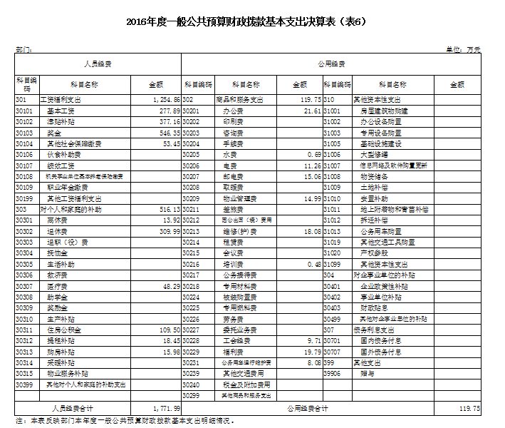 六、一般公共预算财政拨款基本支出决算表(表6)