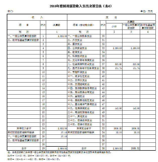 四、财政拨款收入支出决算总表(表4)