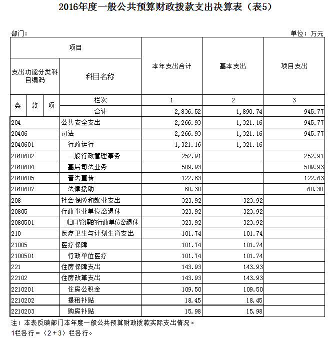 2016年度欧亚国际(中国)官方网站 司法局部门决算