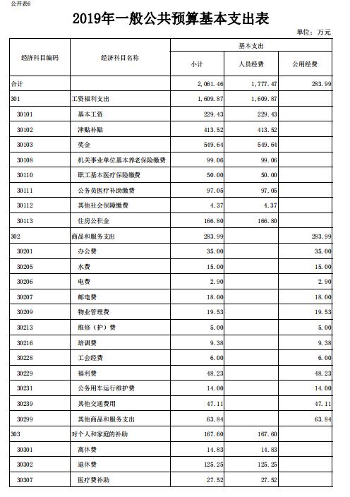 表6.2019年一般公共预算基本支出表