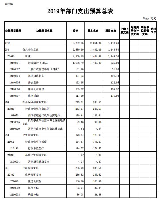 2019年一般公共预算安排支出3209.96万元,具体情况如下: