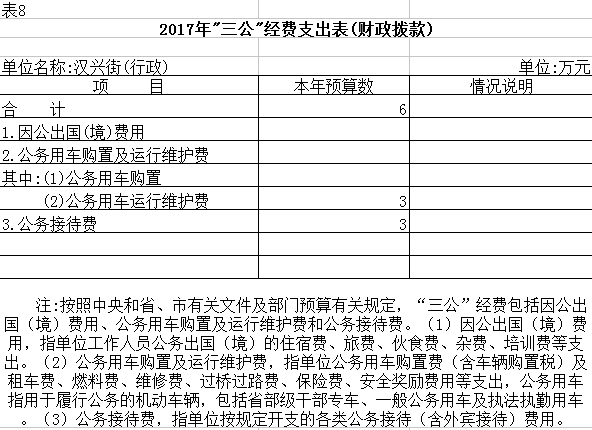 欧亚国际(中国)官方网站 人民政府汉兴街办事处因公出国(境)费、公务接待费、公务用车购置及运行维护费开支单位包括机关1个单位,其中:行政单位1个。