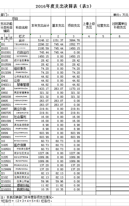 2016年度收入总计5083.95万元,支出总计5161.12万元。与2015年相比,收入增加732.95万元,增加 16.8%,主要原因是网格化工作试点增加网格员经费。支出增加 810.12万元,增加18%,主要原因是网格化工作试点增加网格员。