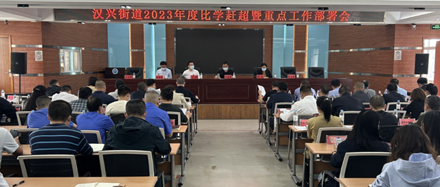 5月8日下午,汉兴街道召开2023年度比学赶超暨重点工作部署会。党工委副书记、办事处主任郭赟通报了2022年度街道绩效管理综合考核结果和一季度绩效目标完成情况。街道区域发展办、公共服务办、公共管理办、党建办4个机关科室重点围绕完成二季度目标任务依次发言。党工委副书记、办事处副主任夏津明传达区消防安全委员会文件精神及铁路护路联防工作会议精神,部署开展消防安全专项排查工作和信访积案化解攻坚行动。