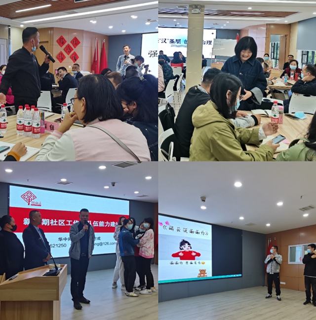 在疫情背景下,培训以小组参与式讨论的方式进行,穿插衔接互动小游戏,帮助社区工作者放松心情,从而达到寓教于乐的实训效果。