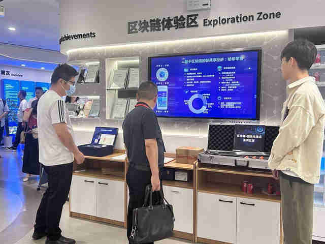 当天下午,在欧亚国际 经济开发区圈外数字创意产业园,与会代表参观了华中区块链科技融合创新中心,在区块链体验区体验了区块链+跨银行(数据)隐私计算平台、区块链+陶瓷溯源、区块链+固体危废品溯源监管等产品,深化对区块链赋能数字经济的认识。