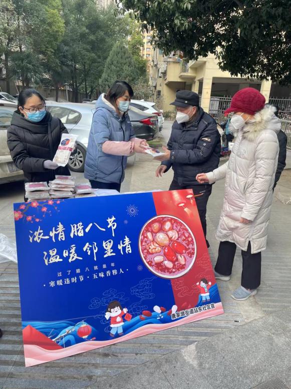 为了在营造浓厚节日氛围的同时保障好社区疫情防控,今年的腊八节,站东社区的工作人员和志愿者们转换思路,为辖区蓝色天际小区、新大陆城市花园小区、电信宿舍的居民精心准备了一袋袋包好的腊八米和一张张暖心的问候卡,长住蓝色天际小区的美国人安德鲁非常开心地领取了一份腊八米,十分感谢社区让他感受到了中国的传统节日文化,小区居民也都说:“腊八米拿在手里,暖在心头。”同时,站东社区还准备了30份八宝粥,送到小区部分独居、空巢老人家中,让这些子女不在身边的老人也能喝上暖暖的八宝粥,暖胃更暖心。独居老人们在家中接过送来的八宝粥时高兴地说道:“我自己一个人住,一到过节就空唠唠的,也没有精神去煮腊八粥。这下好了,你们来陪我、给我送腊八粥,来年的生活肯定更甜蜜。”