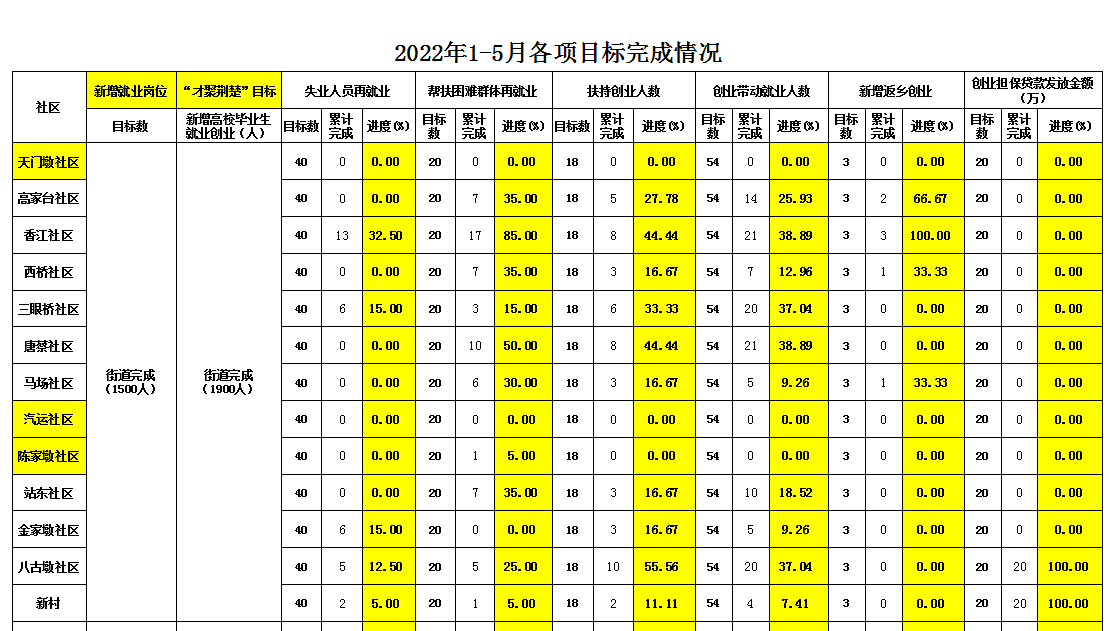 | 标 题 | 唐家墩街道2022年1-5月就业目标完成情况 | ||