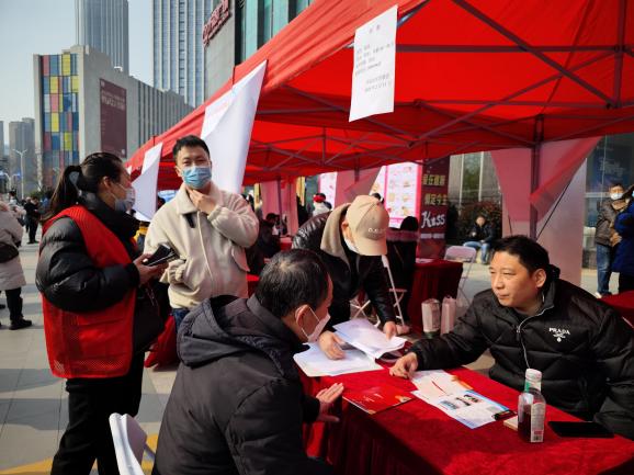 为深入贯彻党的二十大报告关于“强化就业优先政策,健全就业促进机制,促进高质量充分就业”的精神,落实省、市、区关于稳就业、保就业工作要求,唐家墩街道汽运社区党委联合区人资局、工会、团委、妇联、残联、退役军人事务局等部门,于2023年2月15日在菱角湖万达广场开展2023年“春风行动暨就业援助月”专项服务活动,集中帮助农民工、高校毕业生、就业困难人员等劳动者就业创业。