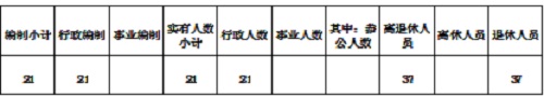 新华街办事处共有编制21人,其中:行政编制21人。在职实有人数21人,其中:行政编制21人。退休人员37人。