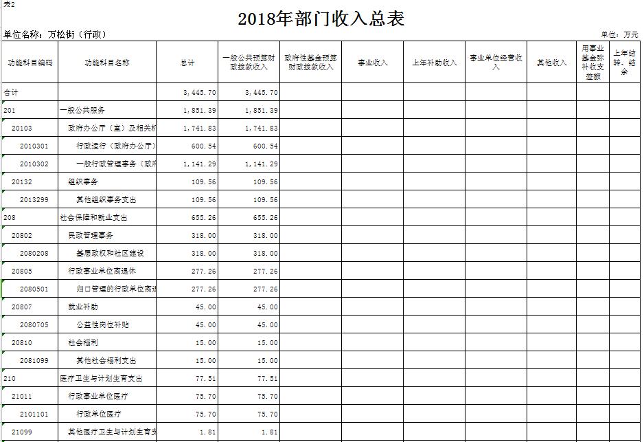 表2.2018年部门收入总表