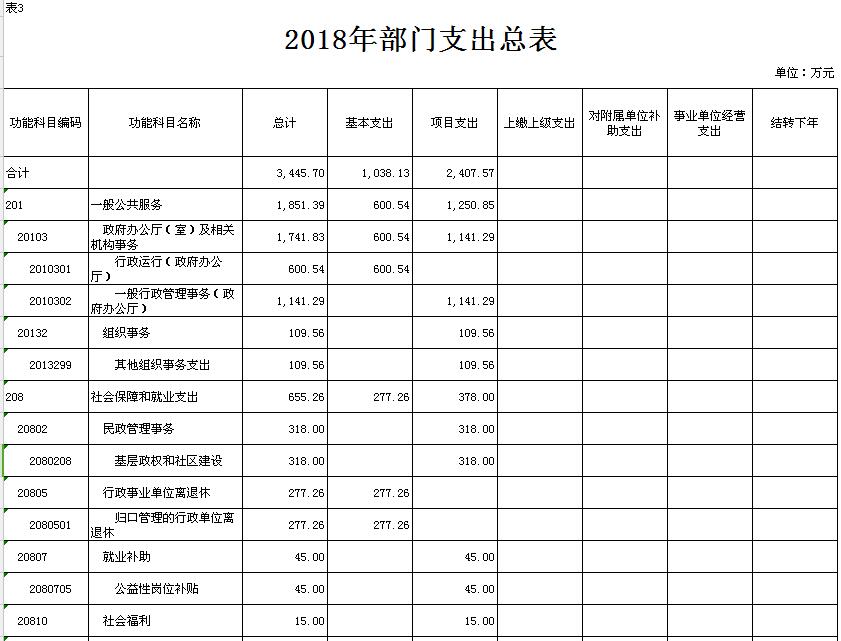 表3.2018年部门支出总表