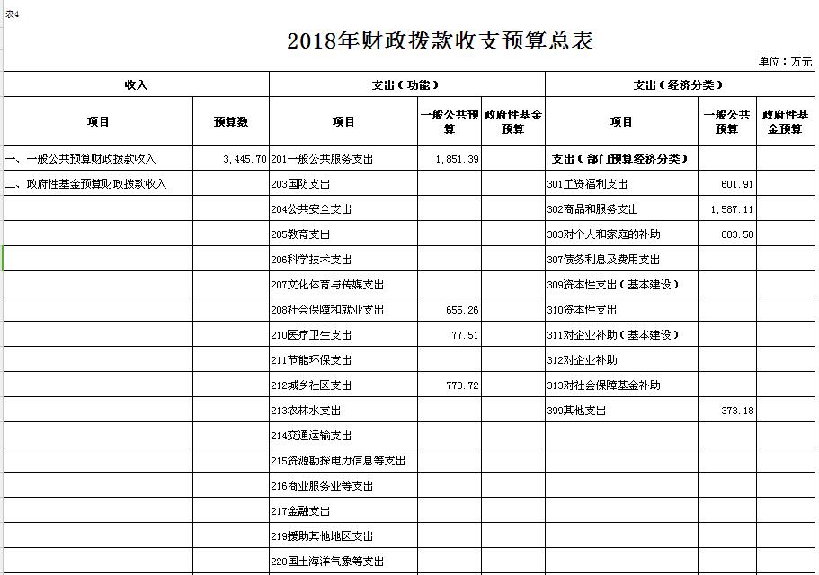 表4.2018年财政拨款收支预算总表