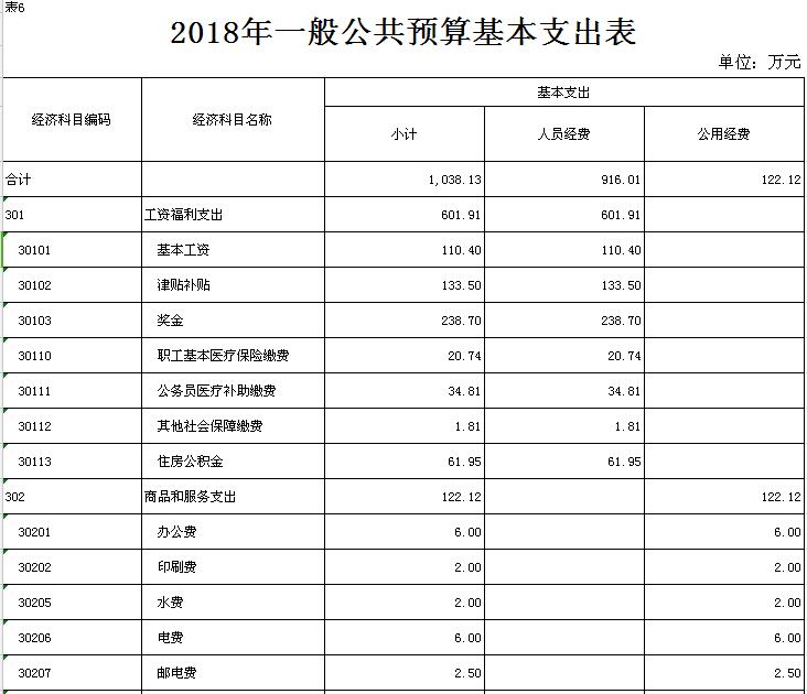 表6.2018年一般公共预算基本支出表