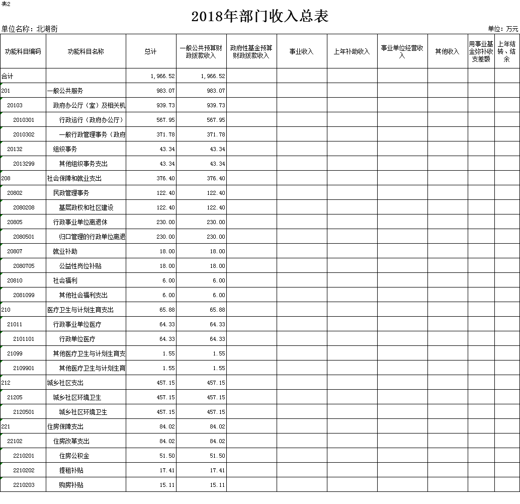 表2.2018年部门收入总表