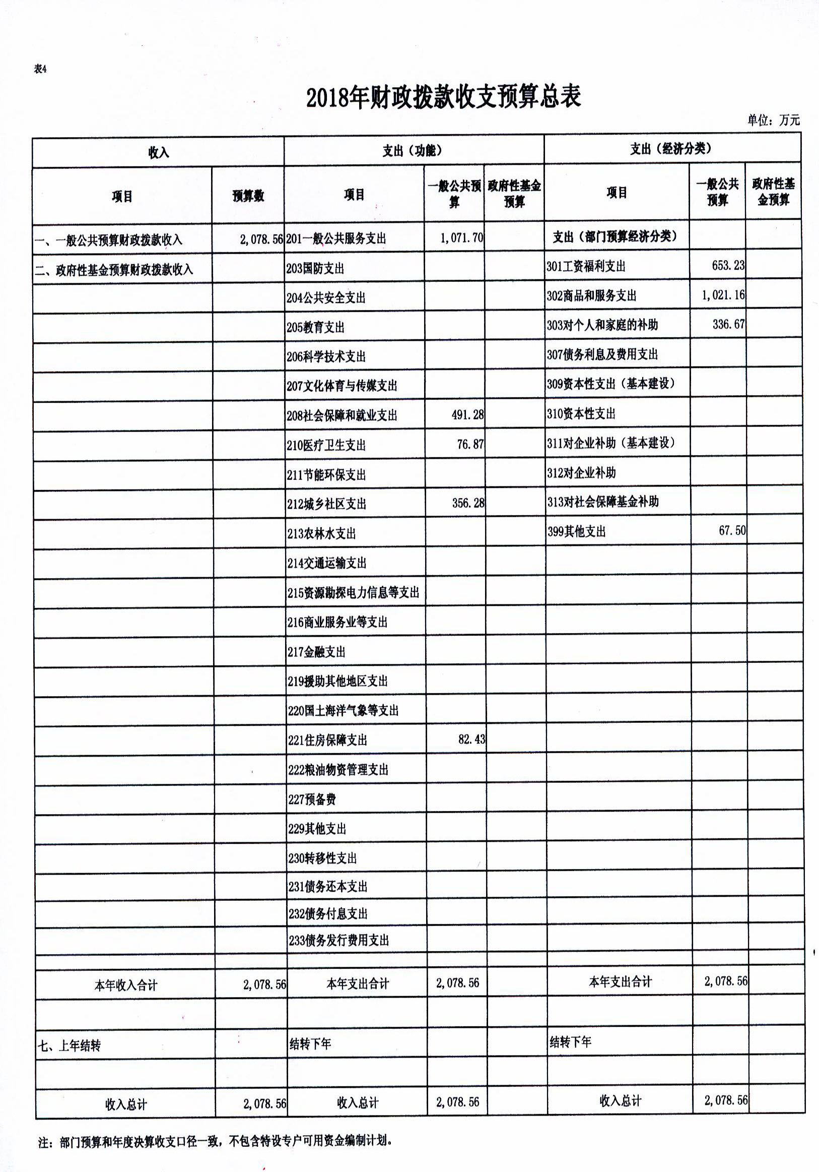 2018年一般公共预算财政拨款(补助)预算数2078.56万元,安排情况如下: