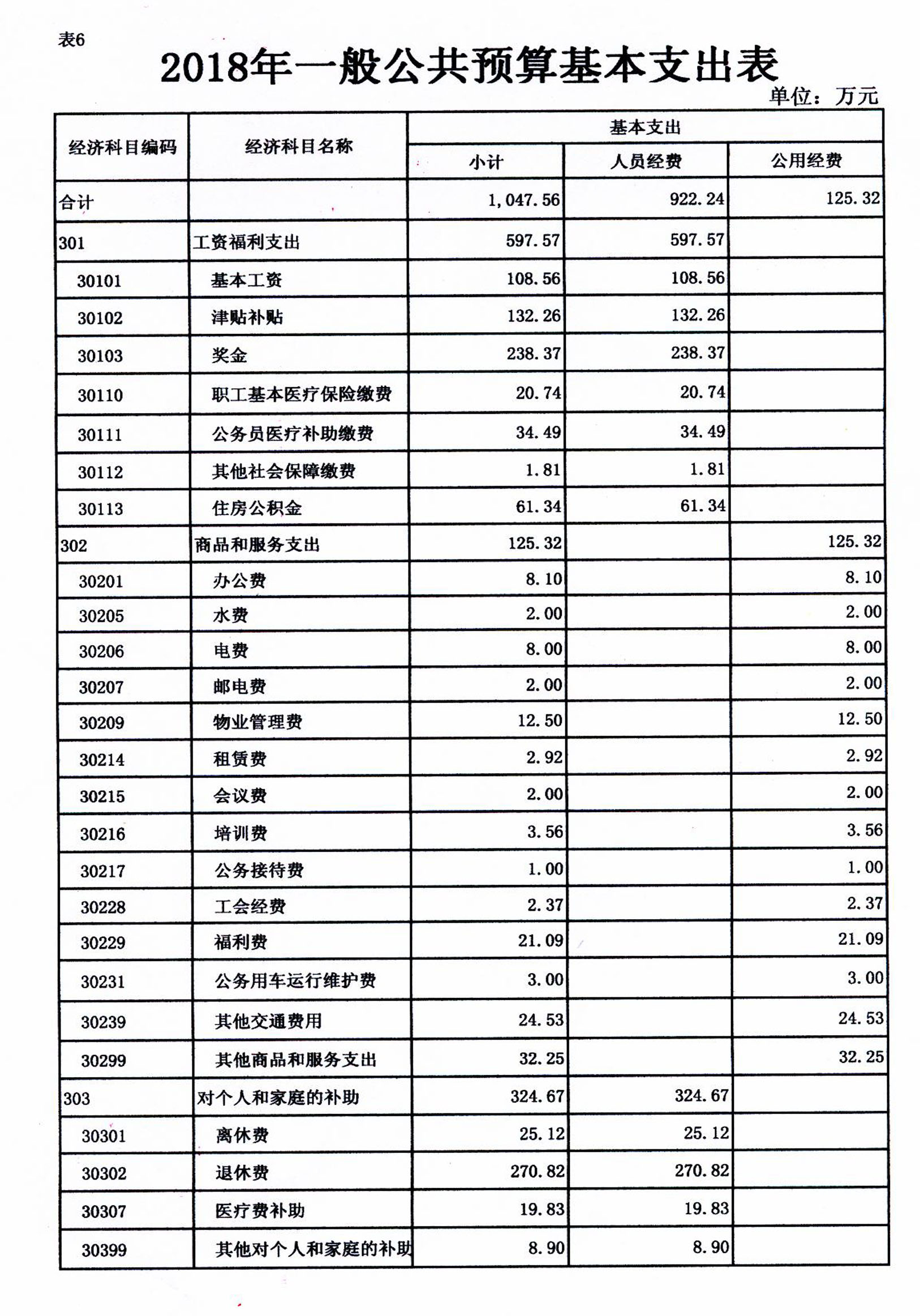 (一)基本支出1047.56万元,较2017年年初预算增加132.79万元,增长12.7%。