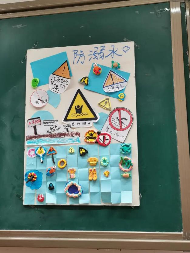 到了安全主题手工互动环节,孩子们兴致勃勃,气氛愈加热烈。在志愿者与学校老师的协助下,孩子们以分组的形式用超轻黏土与画笔完成各种防溺水标识与装饰图案的制作。在大家的通力协作下,一幅大型的“防溺水”立体主题墙诞生啦。