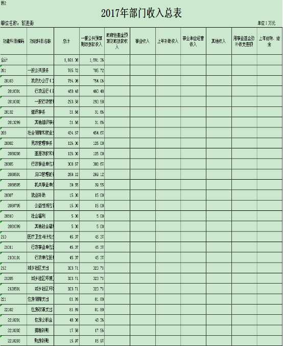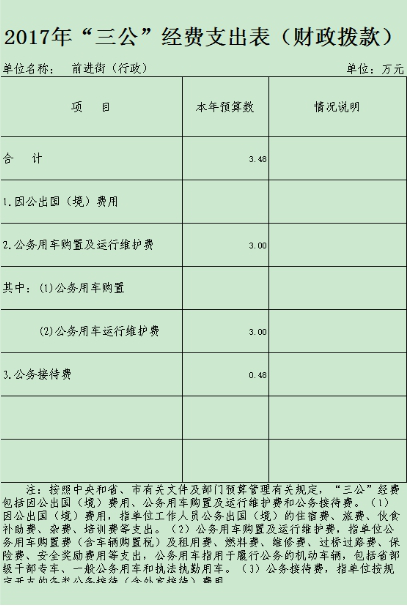 2017年前进街部门预算(及三公经费)公开文字说明及表格