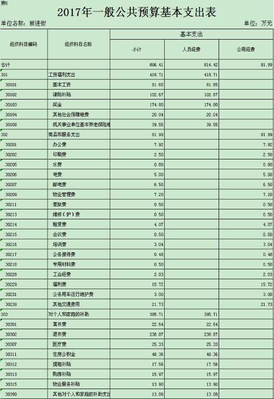 | 标 题 | 2017年前进街部门预算(及三公经费)公开文字说明及表格 | ||