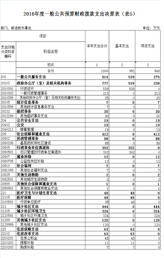 2016年度欧亚国际(中国)官方网站 前进街办事处部门决算