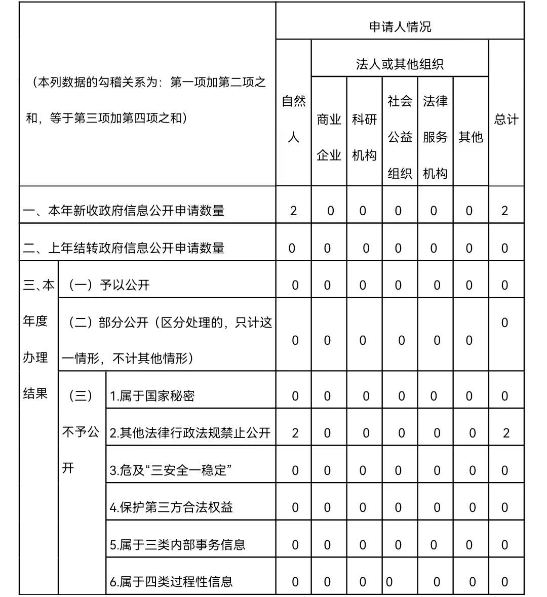 (二)依申请公开政府信息情况。2022年共受理政府信息公开申请2件,办结2件。