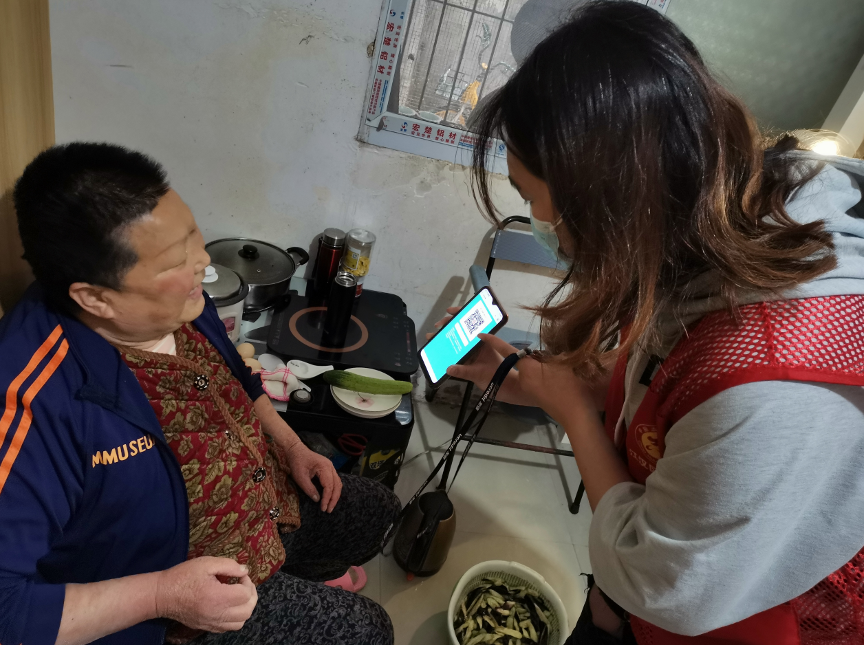 “张婆婆,您别急,这个我可以帮您操作,静态健康码我也可以帮您申请。”网格站副站长詹杨立刻用手机以代查的方式帮助张婆婆显示出了“健康码”。