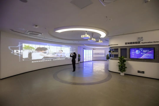 华中区块链科技融合创新中心展厅。