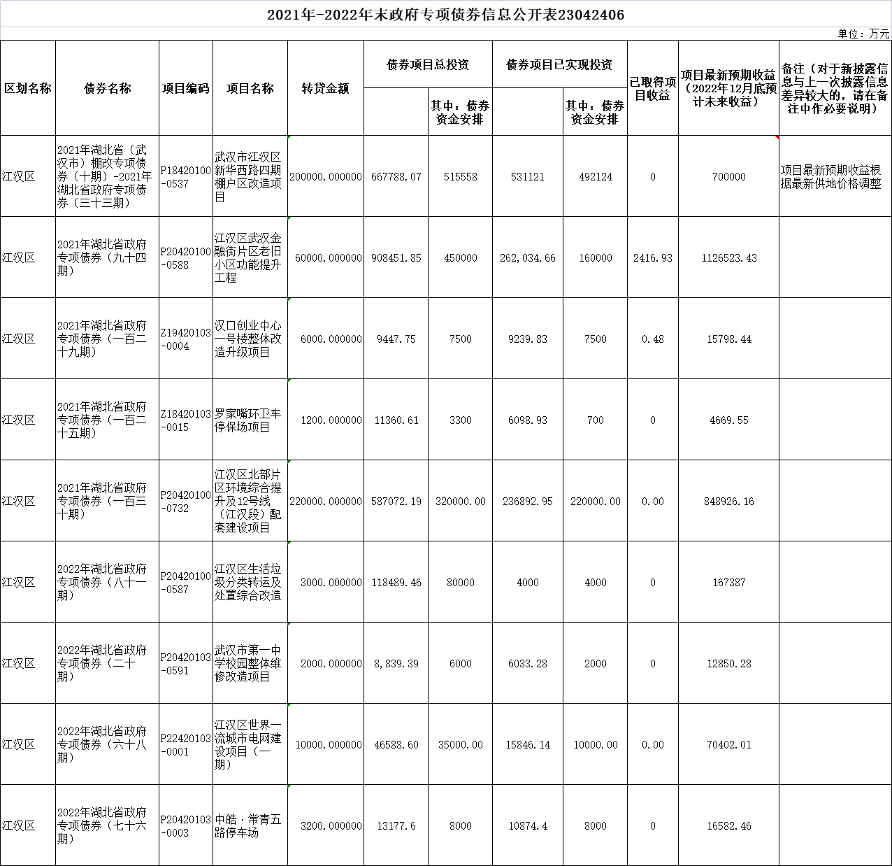 欧亚国际(中国)官方网站 2021年-2022年末政府专项债券信息公开表