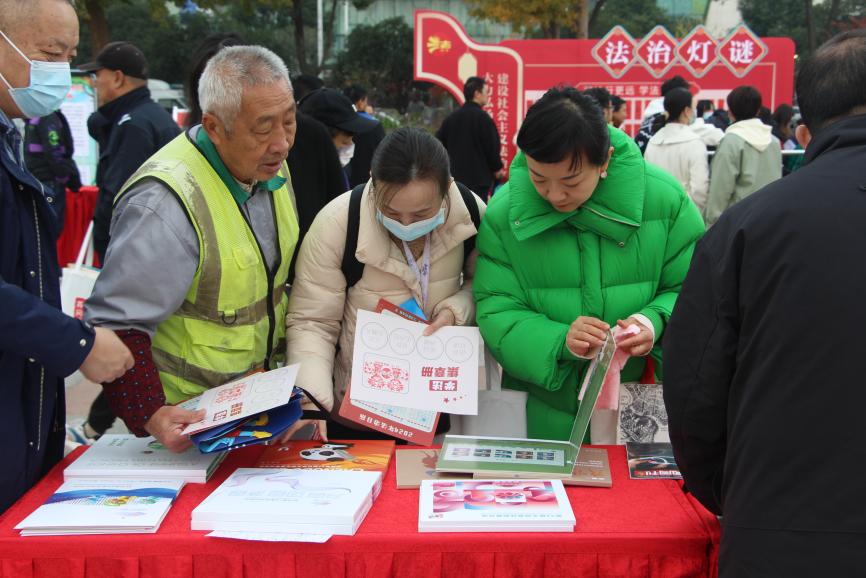 丰富的法治文化展示活动,吸引了近600名居民群众的参与。现场分为法治文化展区和互动活动区,包含宪法知识宣传、法治文化作品展览、宪法邮票展示等内容。