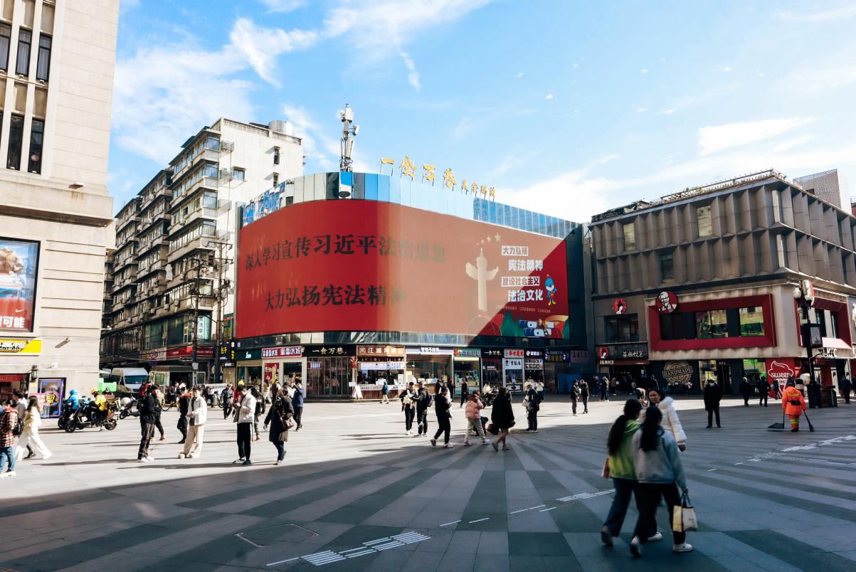 开展宪法宣传闪屏行动,在全区户外大屏、公园显示屏、学校、医院、机关大楼电子显示屏以及火车站等滚动播放宪法宣传海报,营造浓厚学法氛围。