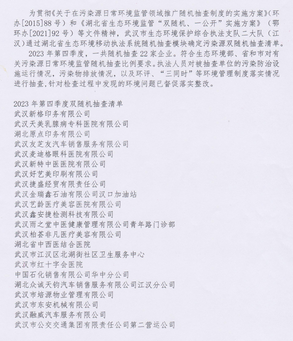 | 标 题 | 2023年第四季度双随机检查结果公示 | ||