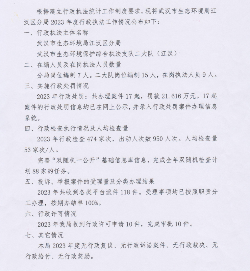 | 标 题 | 武汉市生态环境局欧亚国际(中国)官方网站 分局2023年度行政执法工作年报 | ||