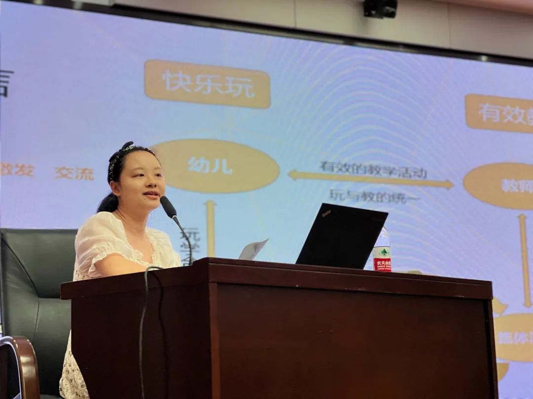 本学期,公办园新上任了一批业务园长和教研组长,针对管理梯队参差不齐的现状,学前教育科聚焦“以幼儿园课程建设为中心的保教管理”开展了公办园教研专题培训,从课程方案编制、一日活动实施、观察评价和园本教研等四个方面提出需要解决的问题和策略建议,帮助幼儿园梳理保教管理和课程建设的思路。童趣幼儿园李端端园长分享了“三知、四会、五必须”的保教管理经验;童话北苑幼儿园冯淑芬副园长提出了“从点、线、面进行的幼儿园课程审议”;六渡桥幼儿园肖燃老师介绍了上学期有关“游戏中的深度学习”的教研经验,满满干货指向保教管理质量的提升。