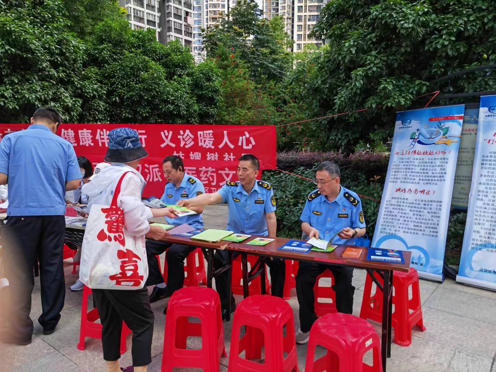 5月23日上午,欧亚国际(中国)官方网站 市场监督管理局机关一支部携手武汉市交通局、汉兴街卫生服务站、禁毒所及姑嫂树社区,共同在汉兴街姑嫂树社区新龙和苑小区广场举办了一场别开生面的法制和安全宣传活动。此次活动旨在增强社区居民的法律意识,提高他们对食品安全、药品安全、燃气具安全、防火安全等重要事项的认识与重视程度。