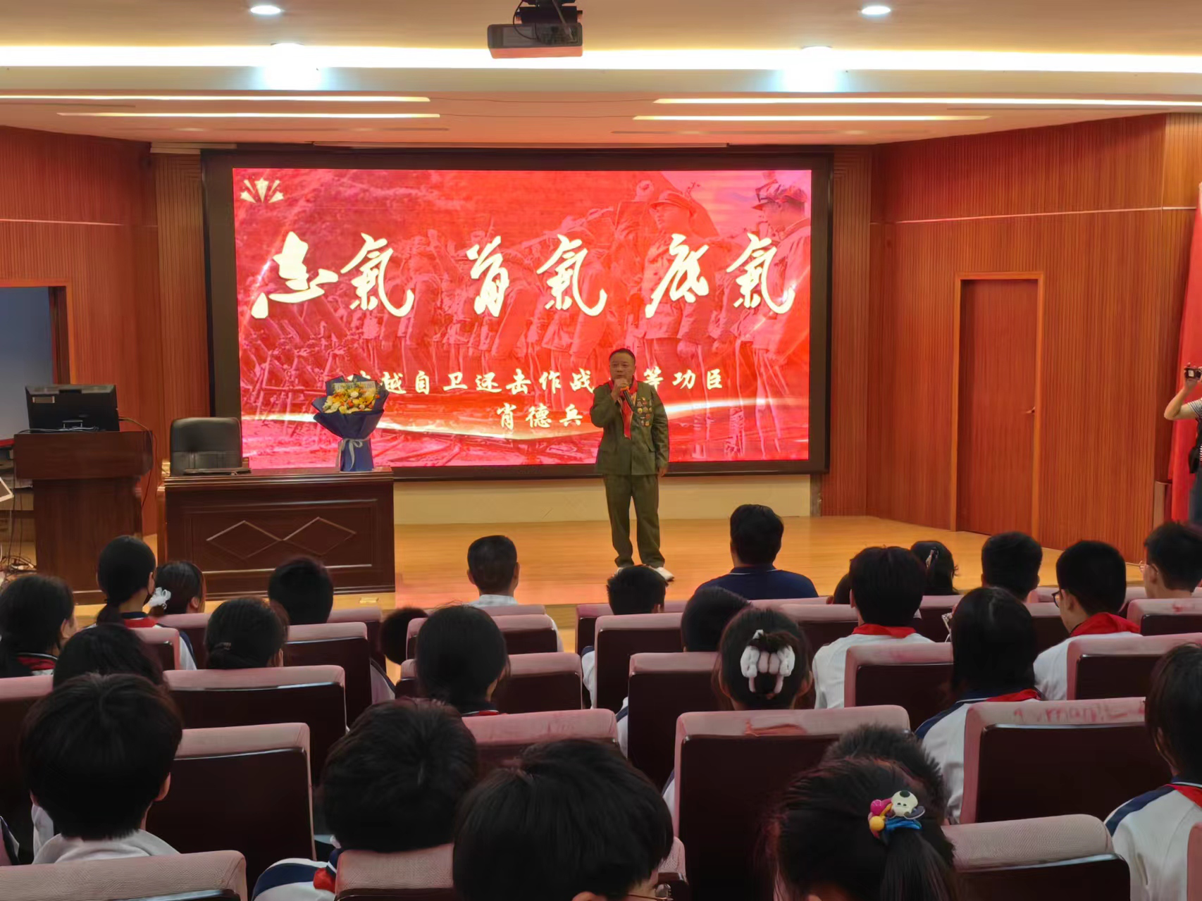 精彩的宣讲令在这片红色热土上学习的每一名青少年学生动容。“我被肖爷爷讲述中展现出的大爱精神和英勇斗争精神所震撼,”校小红星青少年志愿服务队代表上台为肖老英雄献花并系上红领巾,他感慨地说,“本次红色故事宣讲活动以巧妙的构思、曲折生动的讲述、真实感人的再现,为我们青少年学生提供了一份丰盛的红色文化大餐,也是我们六一收到的最好的精神礼物!”