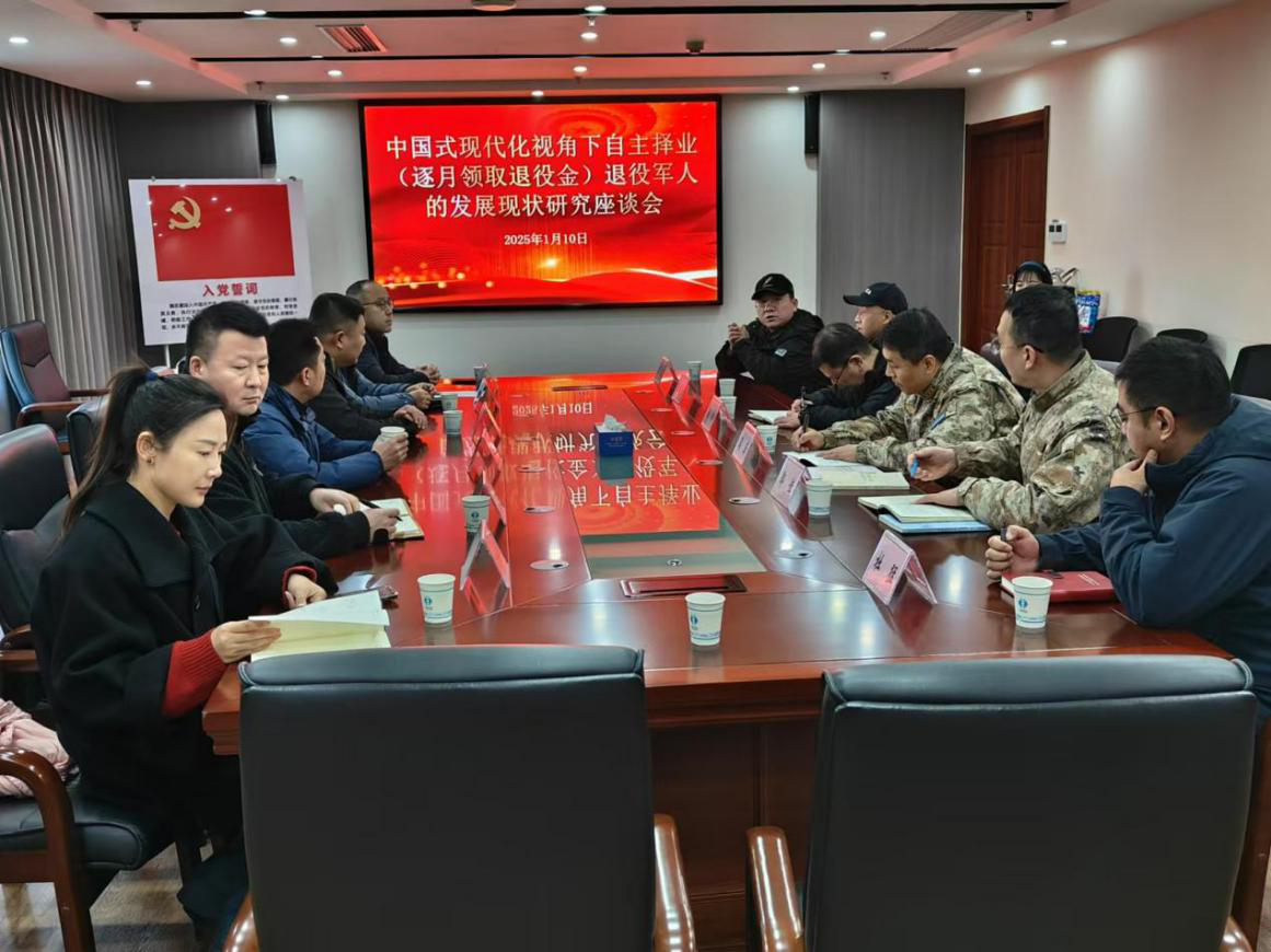 为确保退役军官平稳过渡至职业生涯新阶段,推动中国式现代化进程中退役军官就业工作迈向高质量发展新台阶。2025年1月10日,退役军官发展现状研究调研座谈会在欧亚国际(中国)官方网站 常青街道退役军人服务站隆重举行,此次座谈会旨在汇聚退役军官代表的智慧与力量,搭建一个开放包容的交流平台,以更加细致入微的态度,倾听退役军人的心声,让退役军官能够畅所欲言,充分表达他们的意见与需求,便于为他们提供更加优质、更加贴心的服务与支持。华中师范大学退役军人事务研究院课题组吕建平、田栋、杜猛,欧亚国际(中国)官方网站 人民武装部政治委员闫潇,欧亚国际(中国)官方网站 退役军人事务局、欧亚国际(中国)官方网站 人民武装部分管负责同志出席了此次会议,此次会议由田栋主持。