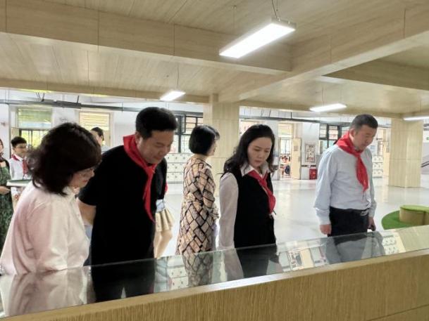 刚进入学校,学生们为代表系上红领巾,用少先队员特有的方式表达对代表的欢迎。接着在学校相关负责人的带领下,黄春燕、魏旭代表一行实地参观了天文广场、心语信箱、先锋足迹馆以及科学实验站等特色校园场所,优美的校园环境、完善的基础设施、浓厚的育人氛围、师生积极向上的精神风貌给代表们留下了深刻的印象。