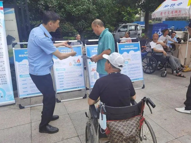 区市场监督管理局工作人员通过宣传展板,以简洁、生动的语言,面对面与居民普及燃气具安全使用知识。