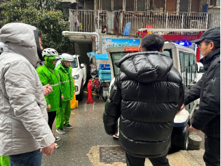 3月14日一早,前进卫生院王晶磊院长一行驾驶医院四轮电动车送济生社区看病问诊老人回社区,电动车返程时在社区上城国际出口被卡住,在多次努力无果的情况下,王院长向社区求助。济生社区工作人员抵达现场后发现电动车卡住的位置没有任何挪动空间,后轮卡在台阶和隔离墩夹角里,雨势渐大,而且堵塞的路口也影响了居民出行。社区党委班子成员现场调度,果断向前进街道公共管理办申请增援城管队员力量,准备将卡住的电动车人力抬出卡点。